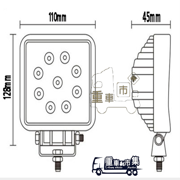 [重車市集] 27W 聚光 方形 白光 LED照明燈 輔助照明燈 探照燈 投射燈 霧燈