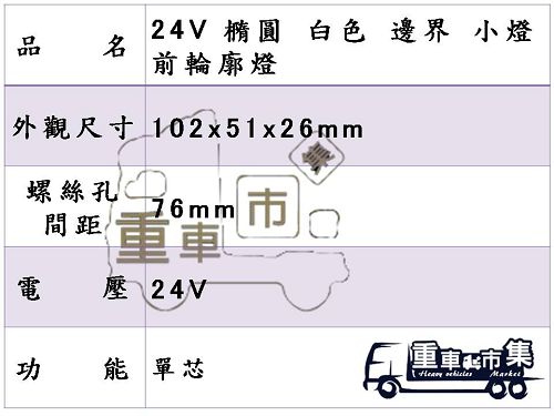 產品名稱:[重車市集] 24V 橢圓白色小燈 前輪廓邊界燈