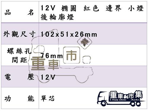 產品名稱:[重車市集] 12V 橢圓紅色小燈 後輪廓邊界燈