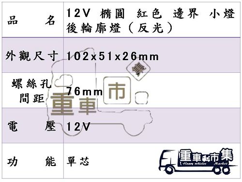 [重車市集] 12V橢圓紅色小燈 後輪廓邊界燈(燈蓋含反光標誌)