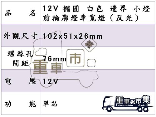 [重車市集] 12V橢圓 白色小燈 前輪廓邊界燈 車寬燈(燈蓋含反光標誌)